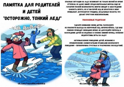 и не оставлять без присмотра ребенка у замерзающих водоемов.